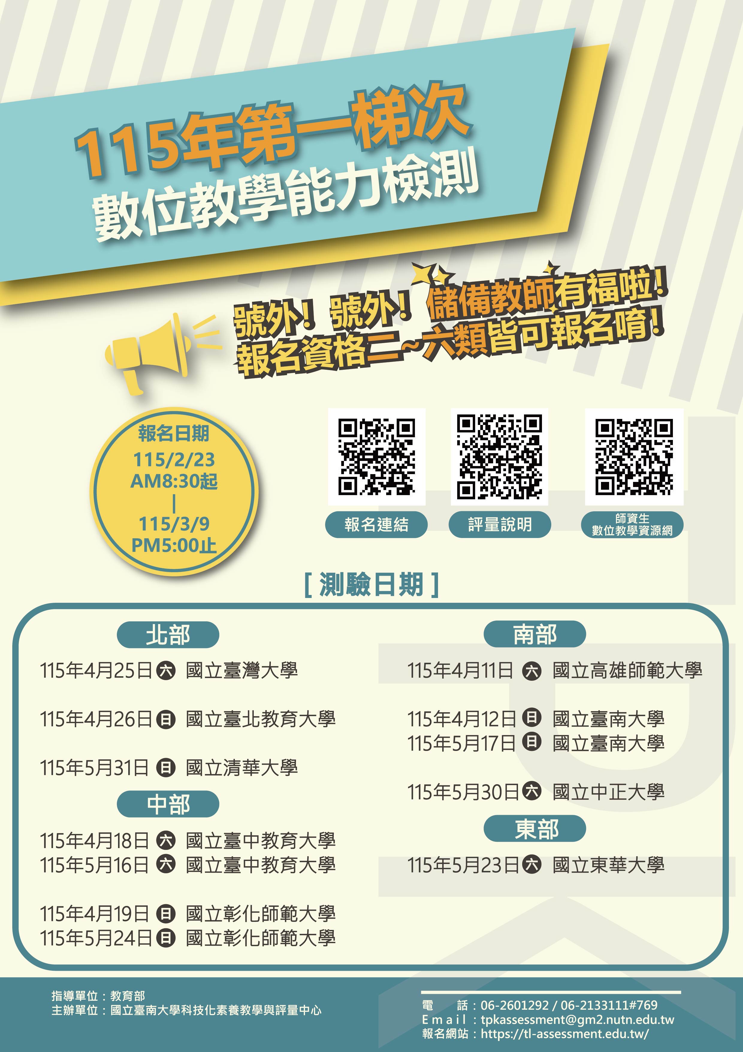 115年度高級中等以下學校及幼兒園教師資格考試日期