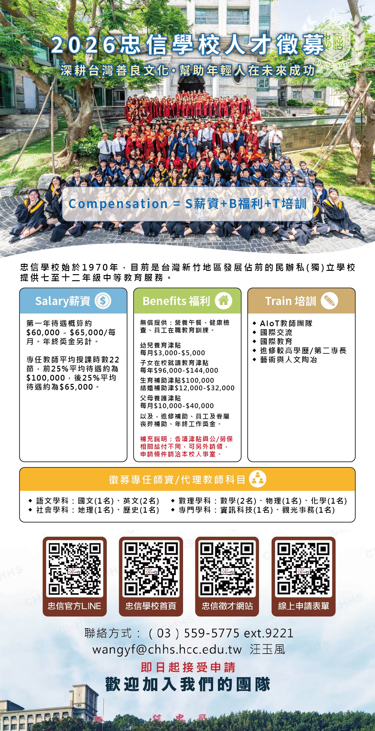 台灣新竹忠信學校邀請教育工作夥伴,詳情請見附件。