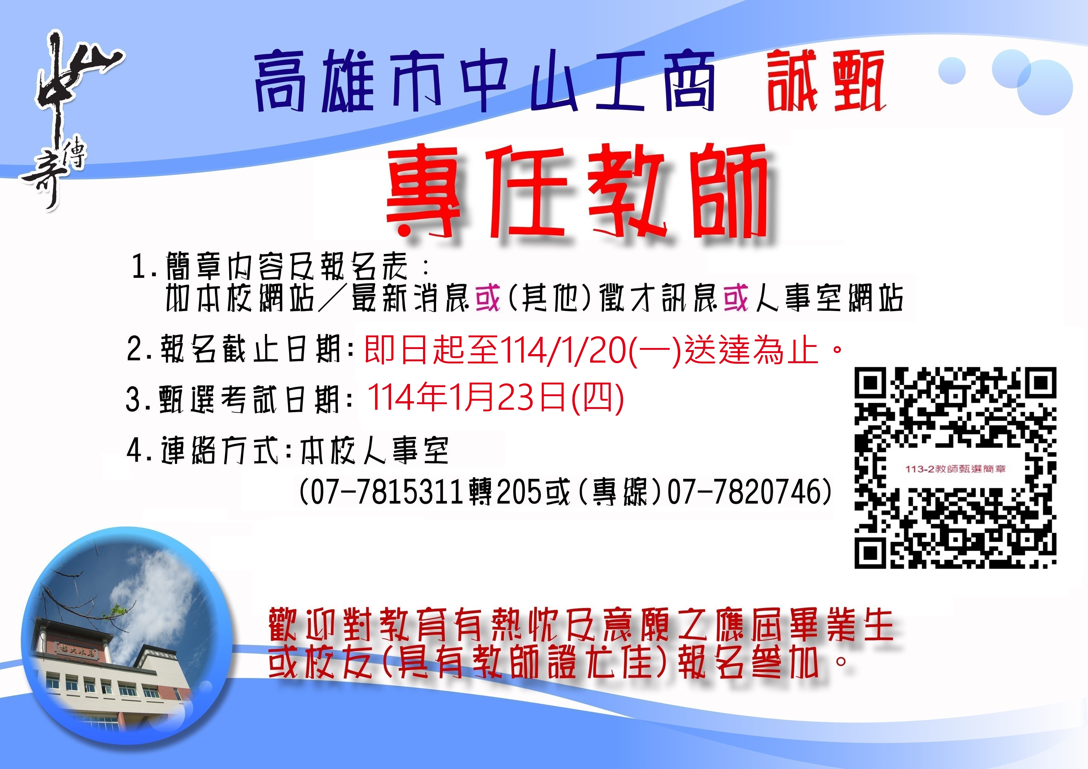 高雄市中山工商113學年度教師甄選